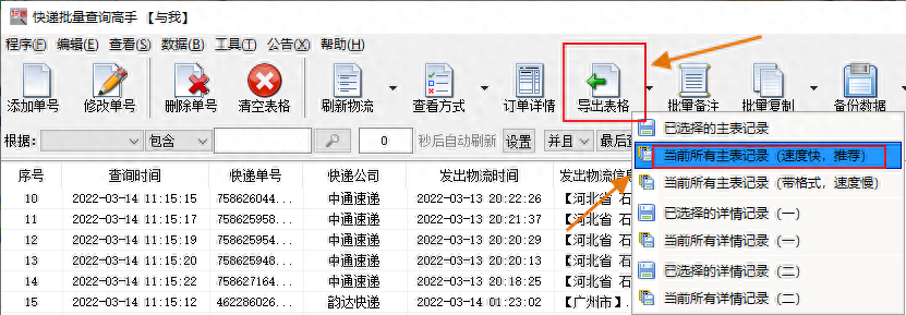 最后我们也可以选中这些单号信息,将其以导出表格的形式保存到电脑上法,随时查看