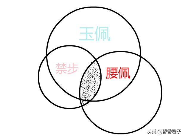 其实禁步与腰佩并非等同,腰佩是系在腰间以别官阶的一种佩件,具有颜色、材质、数量相对于的严厉等级制度体系。
