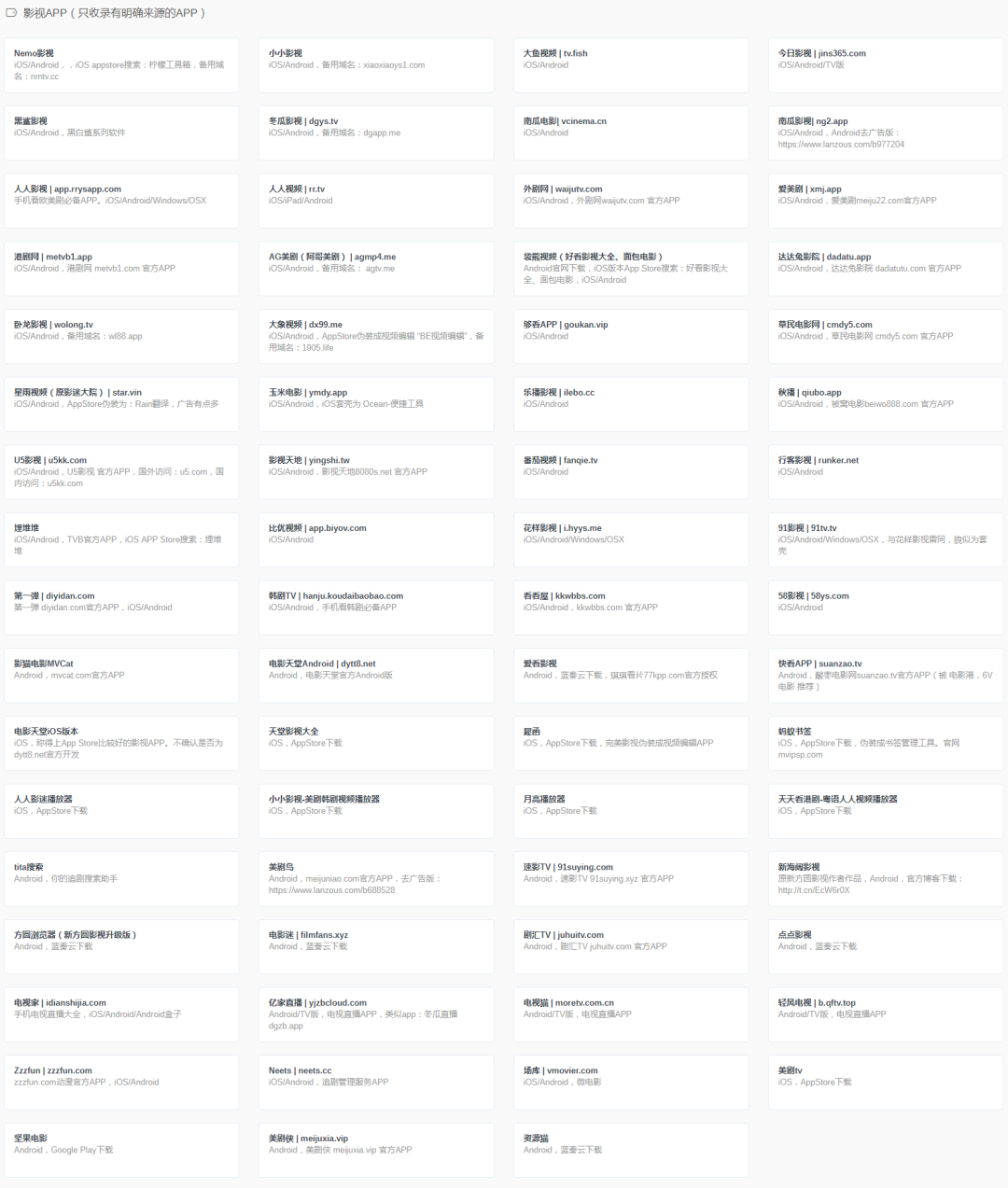 我们以其中的影视app为例,只是这一类就推荐了66款app!包括安卓和苹果的不同版本,其中的许多都是老Y之前推荐过的(点击下面查看大图)。