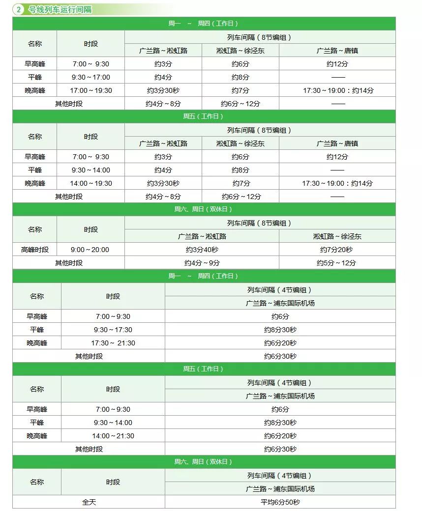 轨交2号线、17号线首末班车时间+运行间隔一览表,你一定用得到!