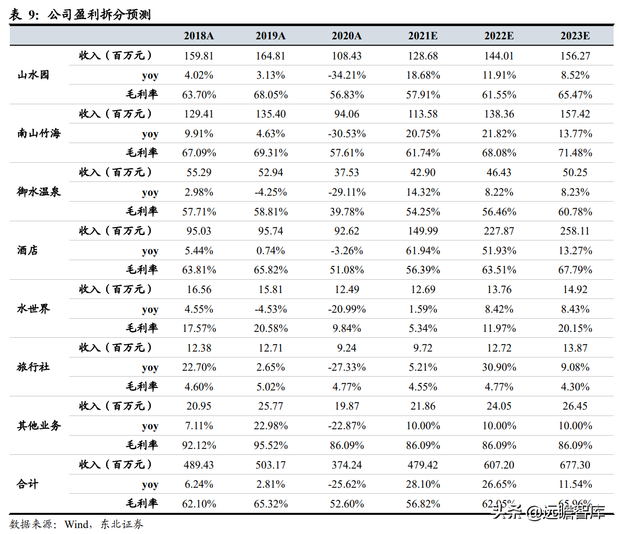 预计山水园景区2021-2023年的收入增速分别为18.68%/11.91%/8.52%。