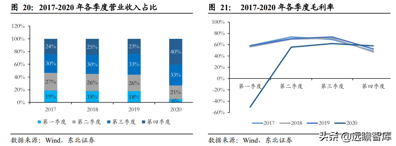 2020年疫情爆发后的季度收入主要疫情受防控影响,2020年四季度推出的竹溪谷大幅度拉动了当季以及全年的营收,未来有望持续贡献可观的业绩。