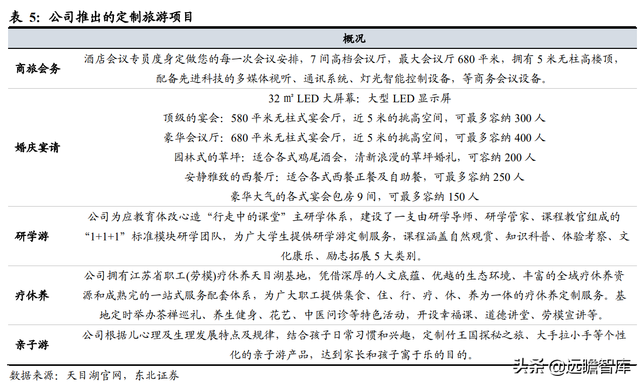 旅行社:区别于传统旅行社经营旅行团业务,天目湖旅行社侧重于基于公司业务的平台+服务功能,故公司旅行社业务受到旅游市场及团队游限制的影响比较小。