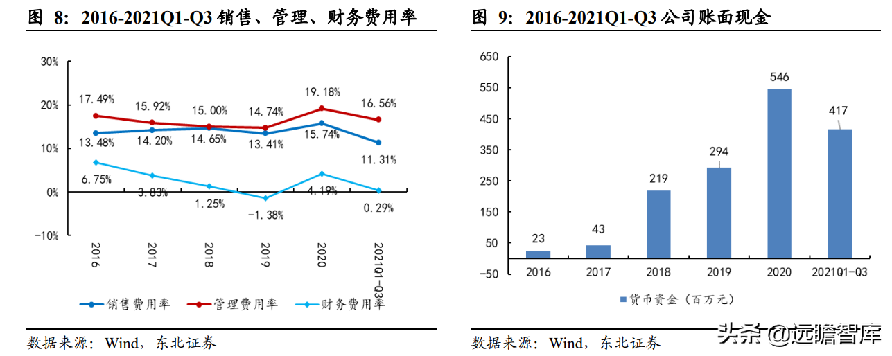 2020年因疫情后人员等固定开支不可避免造成费用率的上行,达到上市以来的高点 39.1%。在公司出色的运营能力作用下,2021Q1-Q3 期间费用率呈现大幅度同比降低至 28.2%,接近2019年同期水平。