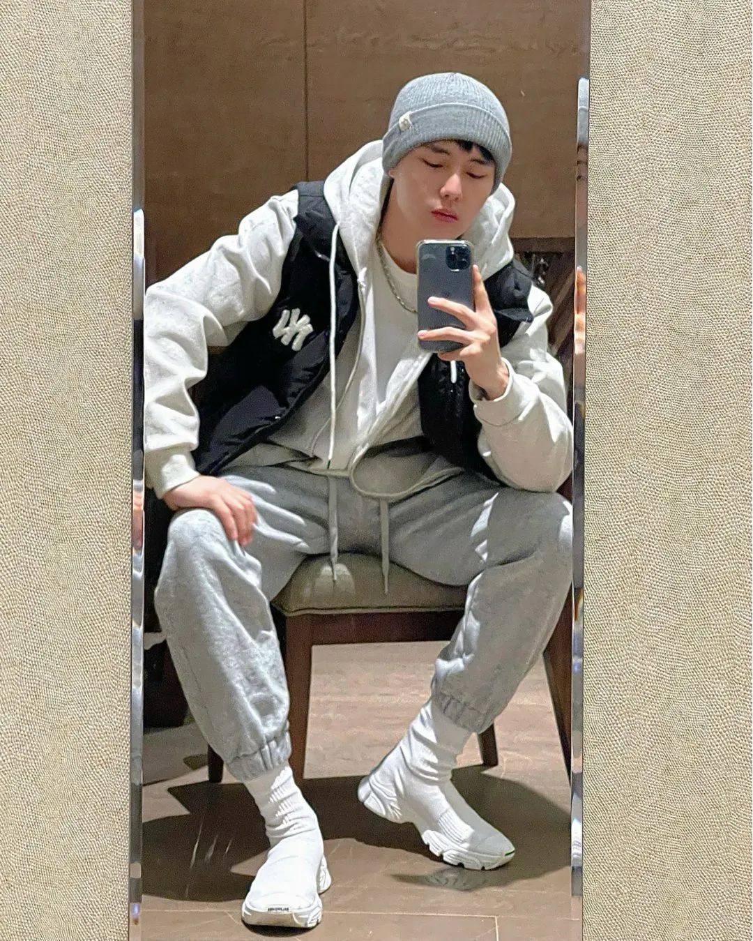 日常私服没有过多搭配要点,但从头到脚洋溢着大男孩的鲜活感。