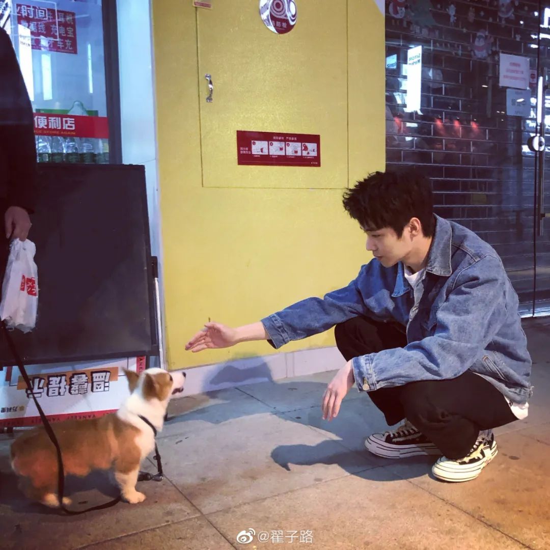 牛仔外套大概住在每一位年轻男孩的衣橱里,内搭T恤or连帽卫衣都是不会出错的减龄公式,和狗狗的友好互动让好感值又Up了一点。