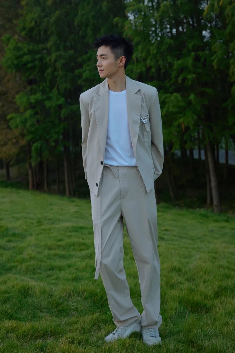 休闲西装是拯救肃杀氛围又不失正式感的最优选择,把色调锁定在浅色,让少年感成功压制庄重感。