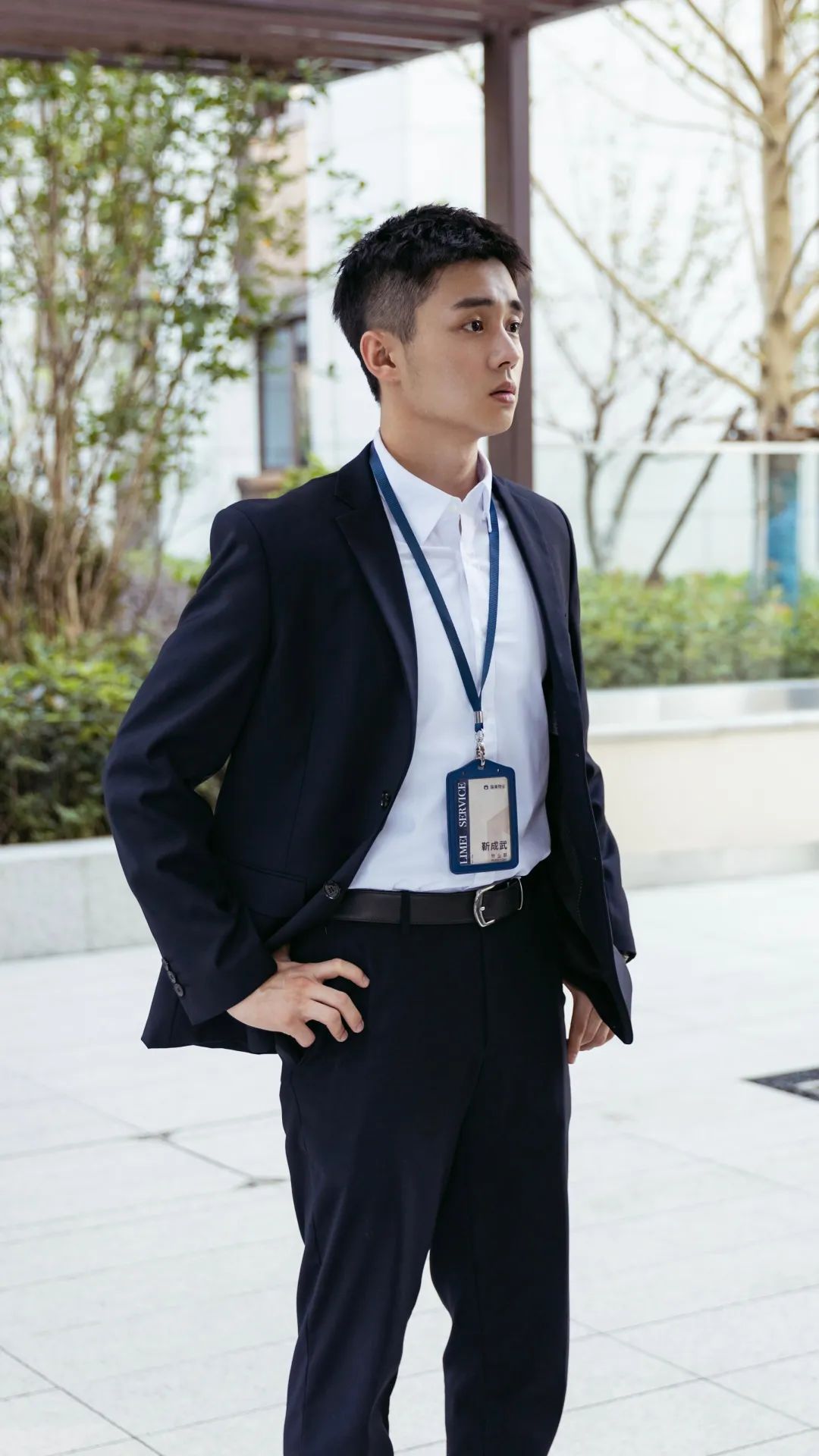 业务员西装和稍显稚气的脸并不违和,职业感也没有削弱少年气。