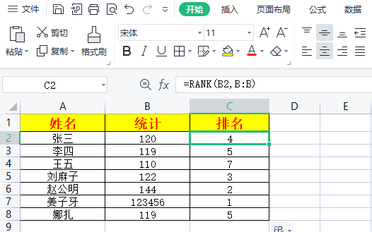 表格函数中RANK函数是一个统计函数,它可以返回一个数字在数字列表中的排位。以这个业绩统计表为例。现在需要进行人员排名。