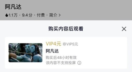 而在此基础上,即便已经升级了最高档的会员套餐,需要额外付费的项目之多,也令众多用户直呼“没意思”。为了解各视频平台的会员权益,记者专门付费开通了腾讯视频超级影视SVIP,该35元每月的会员套餐宣传“TV、手机、电脑、Pad全端通用,超级剧场免费看”,但使用一段时间后,记者仍然为观看电影支付了额外费用:如《侏罗纪世界3》需要VIP支付2.4元,且仅在48小时内有效;《阿凡达》需要VIP支付4元,除同样仅在48小时内有效外,还不支持投屏观看。发现与宣传不符后,记者随后才于VIP权益“超级剧场”详细说明页面中发现:“超级影视SVIP会员可享部分付费内容免费观看”。