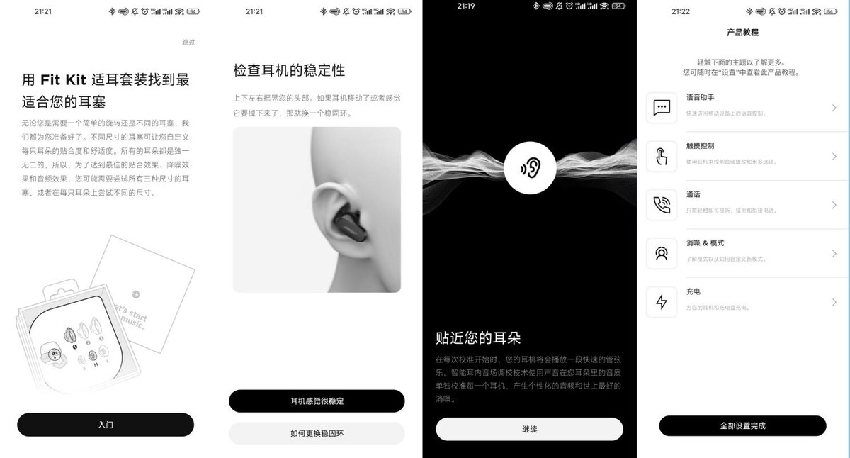 Bose QC Earbuds II的连接方式和其他Bose耳机一样,需要先下载“Bose音乐”APP。根据向导连接成功之后,APP还会有专门的动画教程教你戴得更稳以及怎么检测耳塞的气密性,正确的佩戴方式可以让耳机实现最佳的降噪效果。戴上耳机时,耳机会响起Bose降噪耳机独有的开机音效,然后内置麦克风会利用这个音效对耳道进行测量和音效校准,整个过程不到1秒,并不会影响到体验。