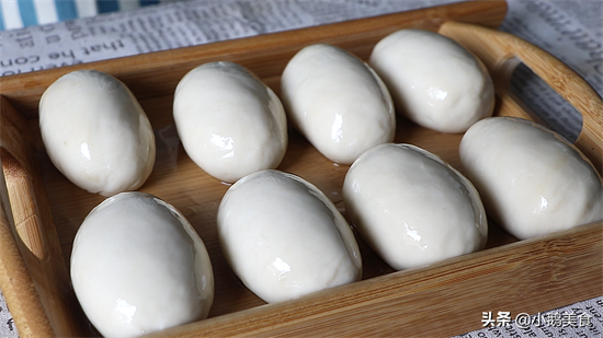 2、分成8个剂子,每个面剂子揉光滑,抹上1层食用油,盖上保鲜膜饧1小时。