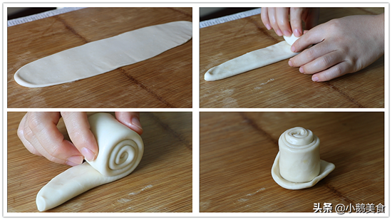 3、面团饧好后,擀成长面片,中间抹一点食用油,撒点盐,还可以撒点五香粉或者花椒粉,对折卷起,尾端包起来,轻轻按扁,盖上保鲜膜饧10分钟。