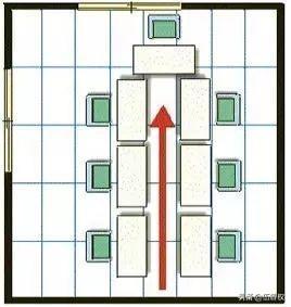 办公室的座位安排也必须要花点心思,上图是[一箭穿心],对被冲的人必然不利,若被冲的人是老板或者是单位的主管,则会影响全公司或者改部门的全体运势。