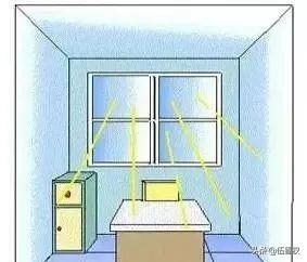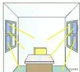 靠窗的办公室,要注意窗外十公尺以内其它房屋射入的尖角,尖角距离越远影响越小,距离越近影响越大。
