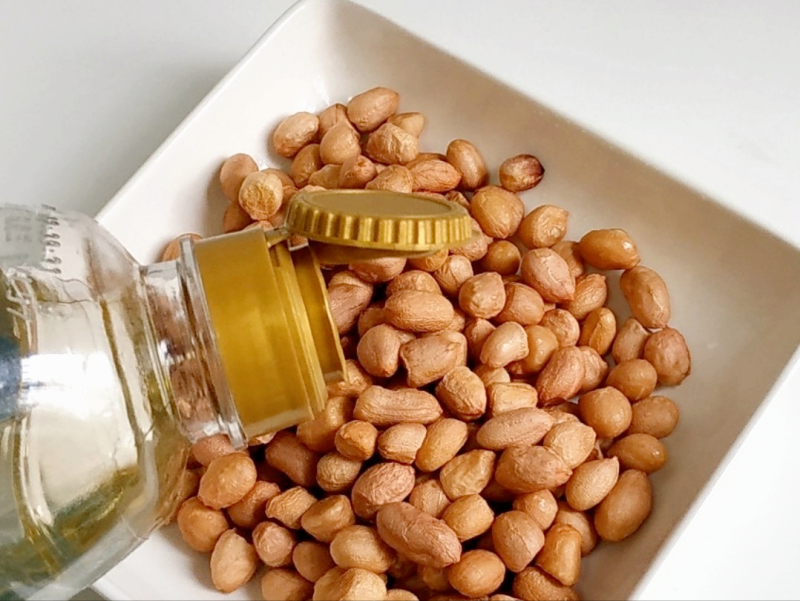 1、准备一把花生米,品种无所谓,个头要均匀,挑出质量不好的花生米,用清水快速冲洗一下,打湿即可,把花生米上喷洒一些植物油,翻拌均匀。