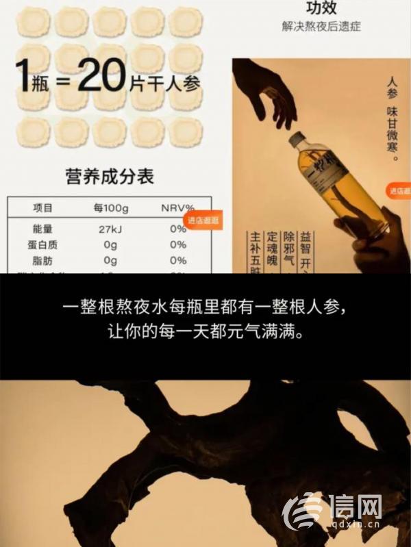 实际上,早在专业医生给出评价前,就有消费者质疑过“一整根熬夜水”所宣传的功能,认为“1瓶=20片干人参”“熬一整夜,喝一整瓶”等说法会误导消费者,甚至在宣导不健康的生活方式,“说到底这就是一瓶饮料,饮料能宣传有抗疲劳的功效吗?”