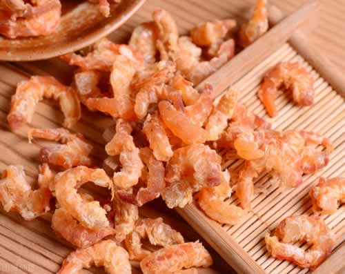 2.选择一些新鲜高质量的海米,海米先放在清水中浸泡15分钟,泡好之后再放入少许料酒,开大火烧至沸腾,继续煮上五分钟,煮熟之后控干水分,把海米捞出来冷凉,再放入白菜里面。
