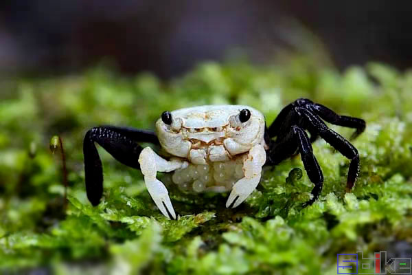 白手蟹:长相个性,黑色的眼睛,黑色的蟹脚,与白色至米黄色的壳对比十分强烈,魔性十足,酷似有毒的生物。天生左右大小鳌,简直就是淡水里的招潮蟹。