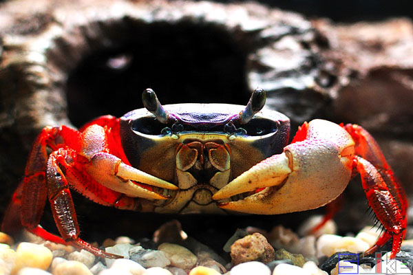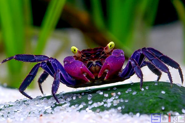 紫恶魔蟹:原产于苏拉维西岛的淡水蟹类品种,虽然不同个体色彩差异比较大,但都有红色的眼睛、紫色的身体和背部的大白斑,一眼望去,非常邪恶,因此得名。