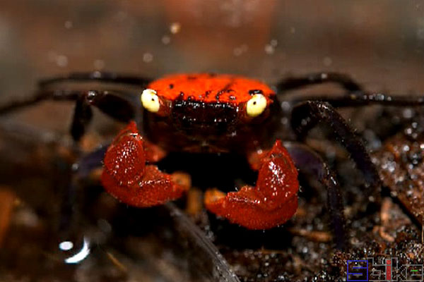 南海溪蟹:中国原生属种,拥有十多个品种,体型较大,非常凶猛,颜色鲜艳而且多变,蓝灰、深绿、红、咖啡色的都有。现因过度捕捉,野生数量越来越少了。