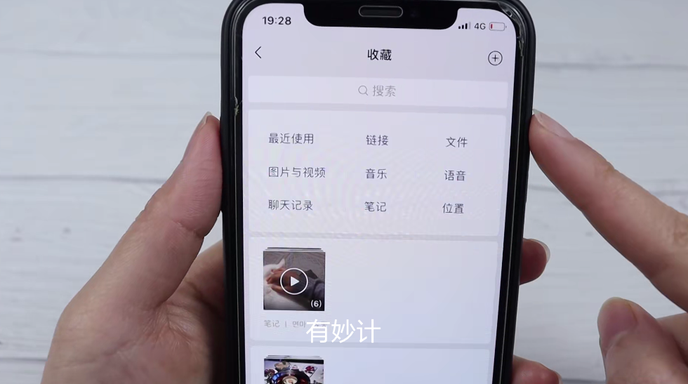 这个方法方法很简单,我们只需要点开微信右下角的我,然后找到收藏,点击进去可以看到它的右上角有个加号标志,我们直接把这个加号点开。