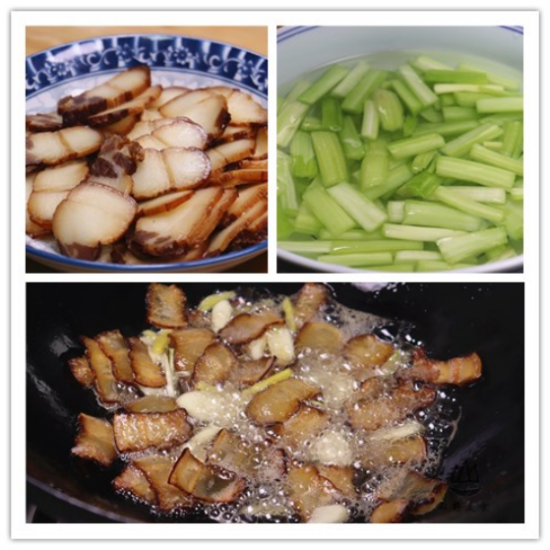 所需食材:芹菜、胡萝卜、腊肉、生姜、大蒜、食盐、生抽、蚝油、胡椒粉