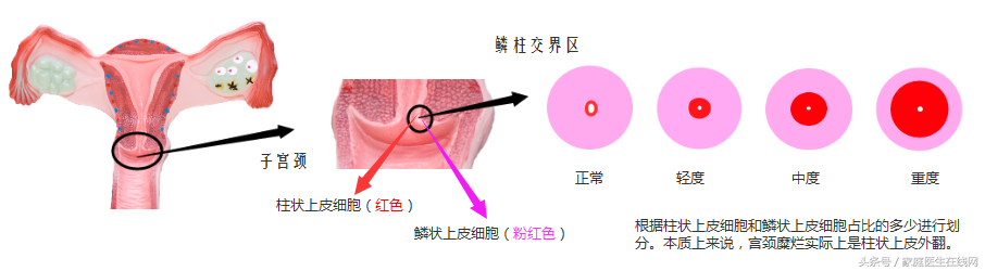 长期以来,医学上将子宫颈外口变红现象称为“糜烂”,其实该命名并不恰当,大部分的宫颈糜烂并非真正的“糜烂”,而是宫颈柱状上皮异位。