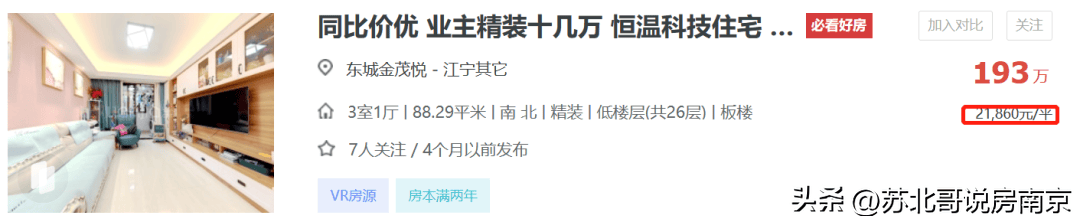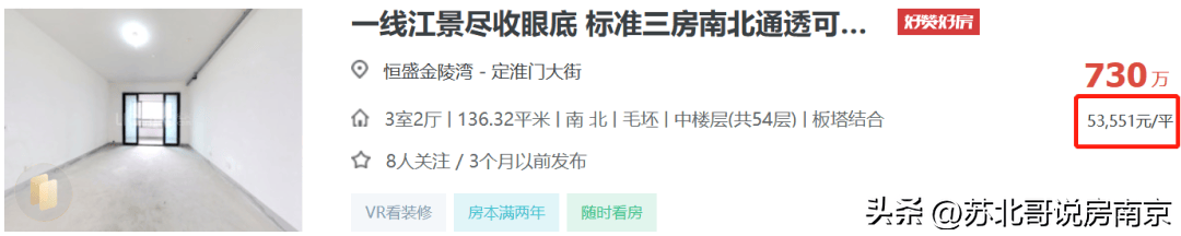 第五:河西恒盛金陵湾!最高峰时该小区小户型单价卖到80000+元/㎡,目前最新挂牌价格跌倒53000元/㎡,最大跌幅33.5%