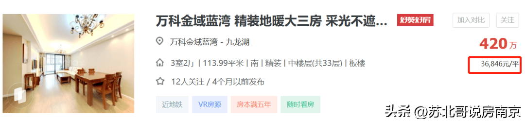 第三:九龙湖万科金域蓝湾!高峰期时万科金域蓝湾房价可以直追河西南,达到了45000元/㎡左右,如今二手房价已经回落至36000元/㎡,跌掉9000元/㎡,跌幅达到20%。