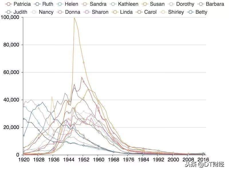 是的,大家喜欢的Helen、Sandra、Susan、Nancy、Linda、Carol、Shirley等也不再流行了。