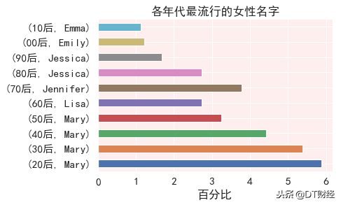 (图片说明:横轴是该名字人数在每个年代所占总数的百分比)