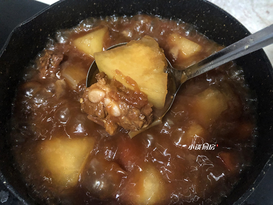 这个做法类似番茄炖牛腩,只不过换成了排骨,排骨这样炖,味道非常香,排骨特别入味,口感软烂。