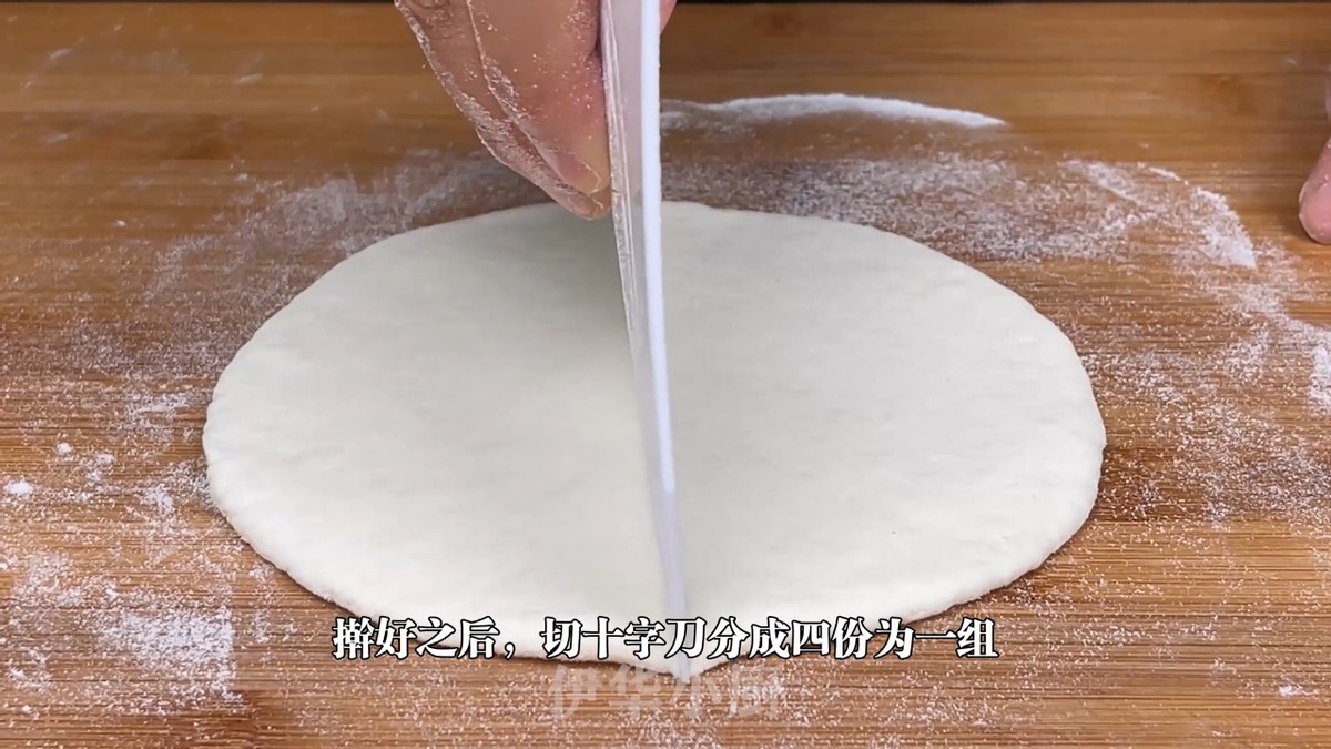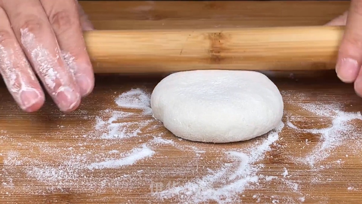 1,我们先把揉好的面剂擀成圆形的饼皮。