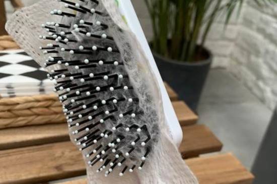 当出现气囊梳子上有头发,需要及时用手将其清理干净,如果头发比较多的话,需要使用宽齿梳的梳齿帮忙处理,气囊梳子上的头发捆绑的比较紧,将梳子浸泡在40℃的盐水里五分钟,然后再使用宽齿梳的梳齿清理干净。