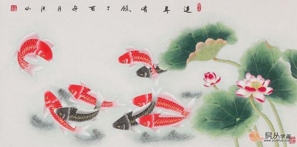 古往今来,鱼一直都是有着年年富余的寄意,所以在家中也是十分适合的。另外,九又有长长久久、经久不衰的意思,九条鲤鱼在水里游来游去还有“如鱼得水”的意义,画面充满温馨和谐,寓意工作和生活长久如意,幸福美满!在客厅挂上一幅九鱼图既能愉悦身心,又有很好的吉祥祝福之意,作为客厅装饰画,一直被人们所好评。