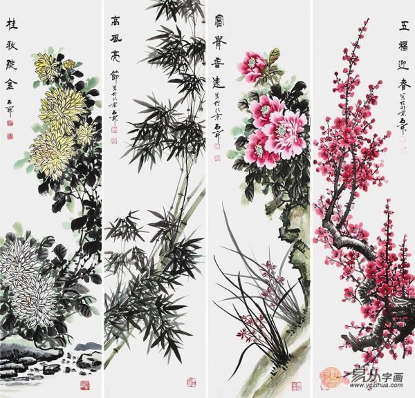 很多朋友平时的性格就是与世无争,喜欢清静,那么我想一副《梅兰竹菊》就非常适合你,以其大方得体,清新自然,寓意吉祥,深受人们喜爱。《梅兰竹菊》为我们的居室呈现出的一种自然美,更重要的是古人把一种人格力量,一种道德的情操和文化的内涵注入到“四君子”之中,通过“四君子”寄托理想,实现自我价值观念和人格追求。