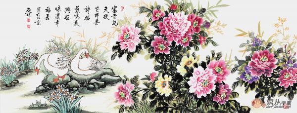 挂画,往往是有着美满寄意的,比较多见的就是花鸟画,可以满足家中主人对居所装扮的期望;还可以调节人们紧张的生活状态,让人的身心得到放松;最重要的是还有改善家居风水的功效。花鸟画以其清新,和谐,自然,欢快的格调,满足了现代人生活的要求,更适合家中客厅悬挂。