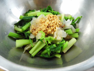 8. 把芹菜、海蜇头放入容器中。