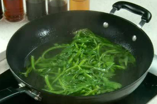 焯水大概半分钟就可以将空心菜捞出用冷水过凉,然后将空心菜捞出控干水分。接着就可以开始炒空心菜了,起锅烧油,油热后放入空心菜,加入盐、蒜末等调料开大火爆炒两分钟就可以出锅了。