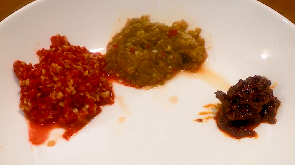 4.这道菜泡椒末一定要有,再少来一点点的郫县豆瓣,增加汤色的味道。再准备一点拍蒜和姜米。