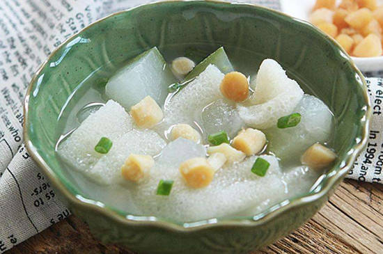 冬瓜洗净切片,虾皮用清水洗一下,沥干水分。热锅烧油,放入葱花,炒出香味,倒入虾皮翻炒,再下入冬瓜片翻炒,加入盐、胡椒粉等调味,出锅即可食用,味道鲜美,既能补钙还能起到减脂的作用。
