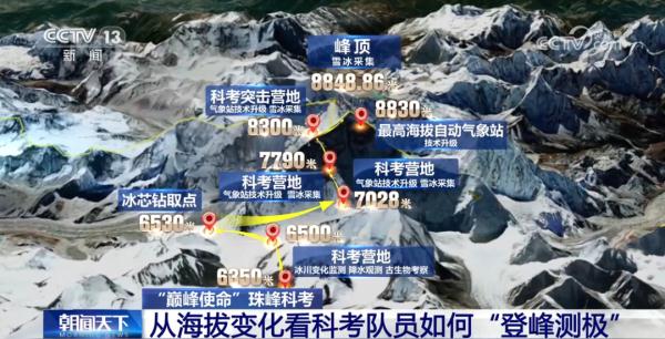 作为世界最高峰,珠穆朗玛峰有着极高的研究价值。在如此复杂的环境中,科考队员如何“登峰测极”?跟随海拔变化一起了解↓