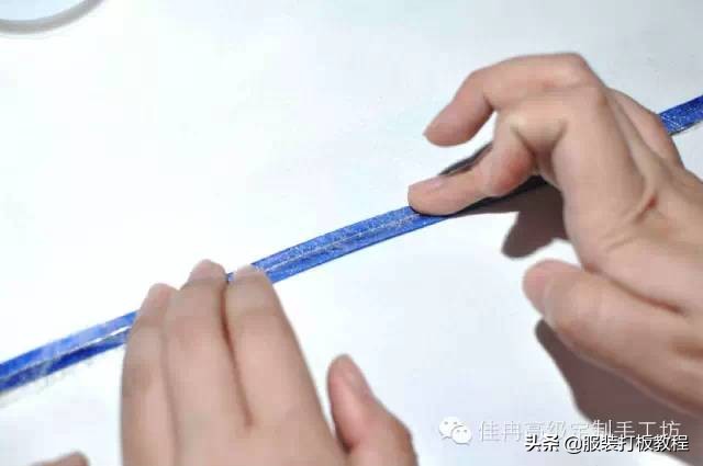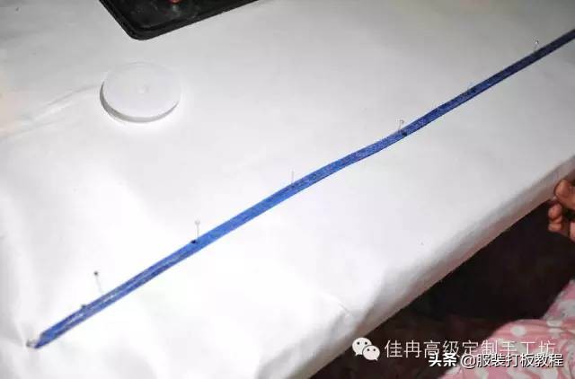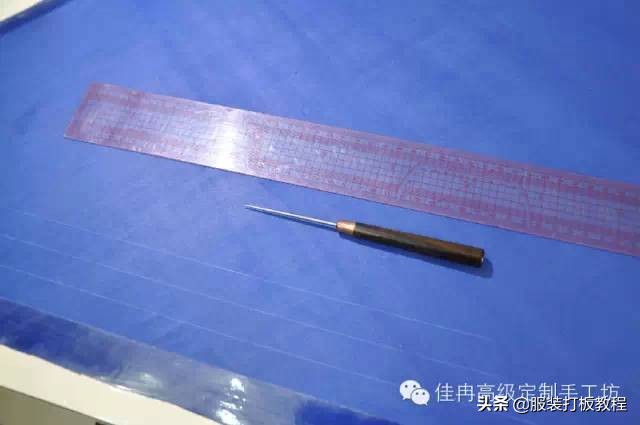6.晾干后,用尺子画2cm宽的直线。深色面料可以用锥子去画。切记每个牙子的间距要保证在2cm。