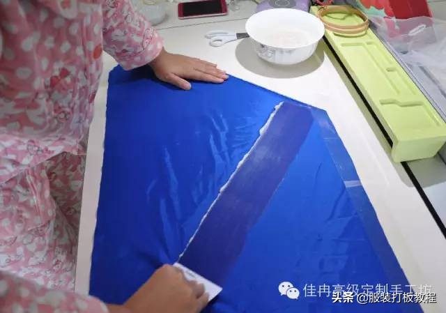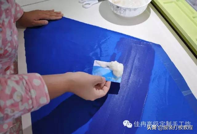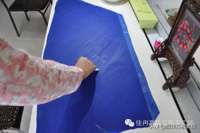 3、刮浆糊的方向要按照纱向去刮,这样不会影响面料本身的丝道。反复四次刮浆糊。每次等浆糊八成干的时候即可挂第二次。