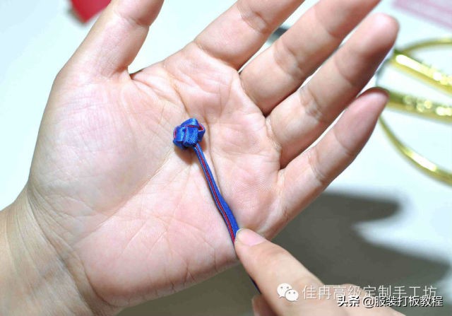 17.用牙子去盘扣子,如需了解制作疙瘩扣的步骤请大家到网上去找图片教程即可。