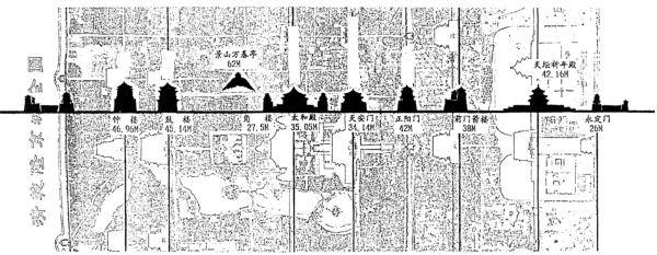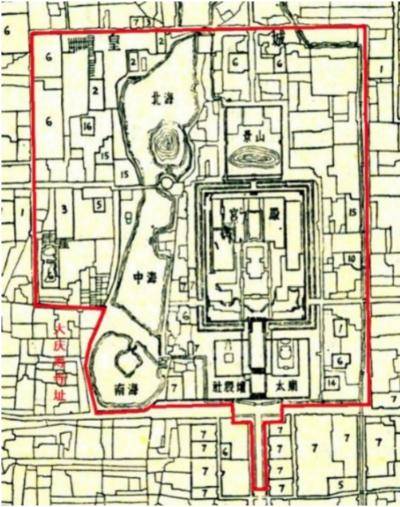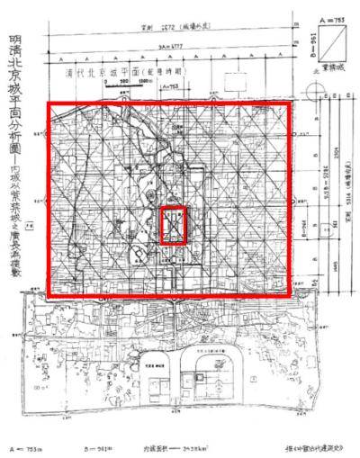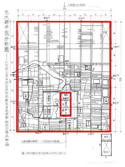 傅熹年先生指出,元大都是以宫城御苑为一个基本模数单位,整个大城的面积由此单位积累而成,明代紫禁城亦是如此,亦是以宫城为模数单位,以此面积积累而成内城的面积。