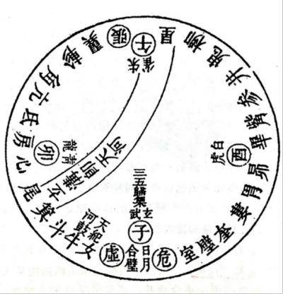 北斗指二十四山定二十四节气,北斗在黄昏时指向二十四山的子位即冬至,此后每15天指向一山的中央,由此指示二十四节气。