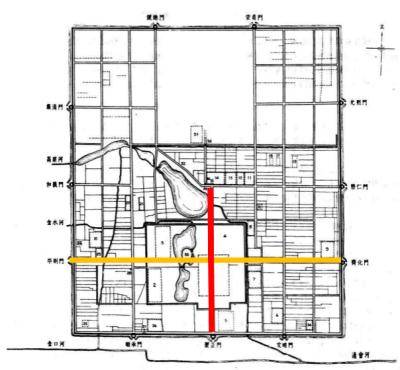 中国古代都城都是南北走向,同时有南北、东西两条轴线,这是中国古代进行空间规划、平面布局的基本思维模式。