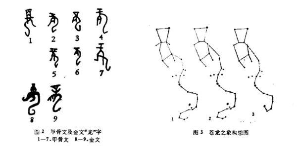 冯时在中国早期星象图研究(1990)中将商周古文字“龙”与龙星进行了比较,发现“龙”字所象之形,即二十八宿东宫苍龙的形象,古人观测东宫苍龙昏旦之时的运行位置即可测定时间,“龙”是时间的“指针”,在地平方位中指示着时间。